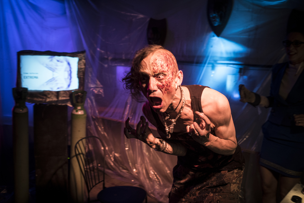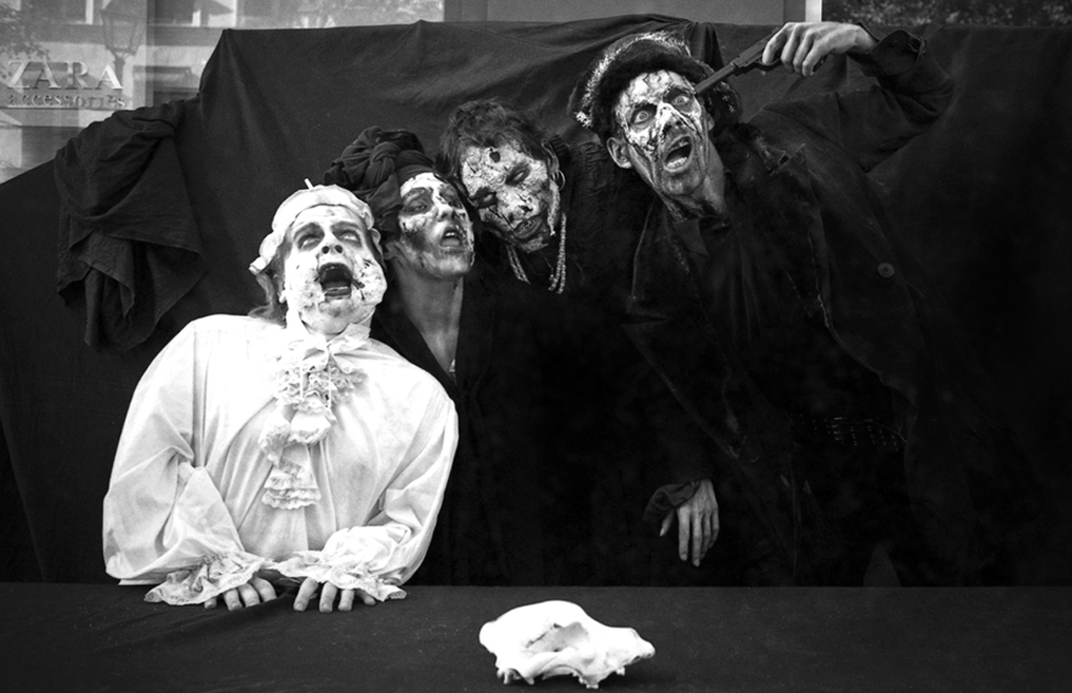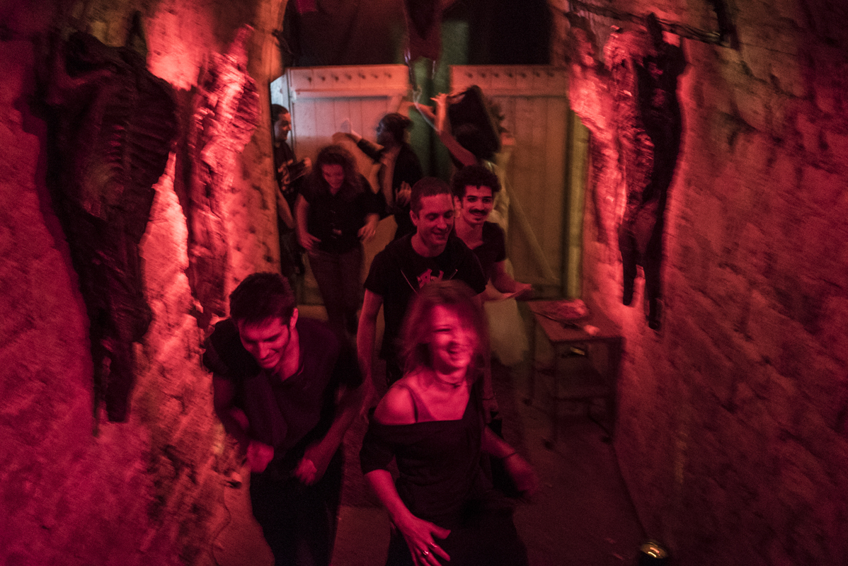 Ici, le public descend dans les méandres d’un univers confiné où éclate toute la désopilante absurdité de notre condition. Tour-operator des Enfers pour candidats au suicide ou visite d’un laboratoire d’expérimentation médicale sur morts-vivants non consentants : tout est fait pour séduire de nouveaux investisseurs prêts à miser sur un filon rentable, parfaitement immoral mais ludique et très rigolo.